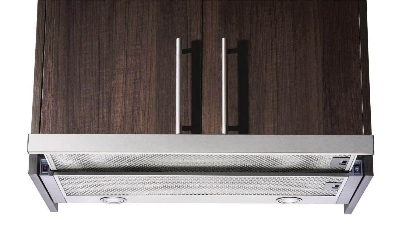 • 24” (60cm) stainless steel built-in glide-out range hood